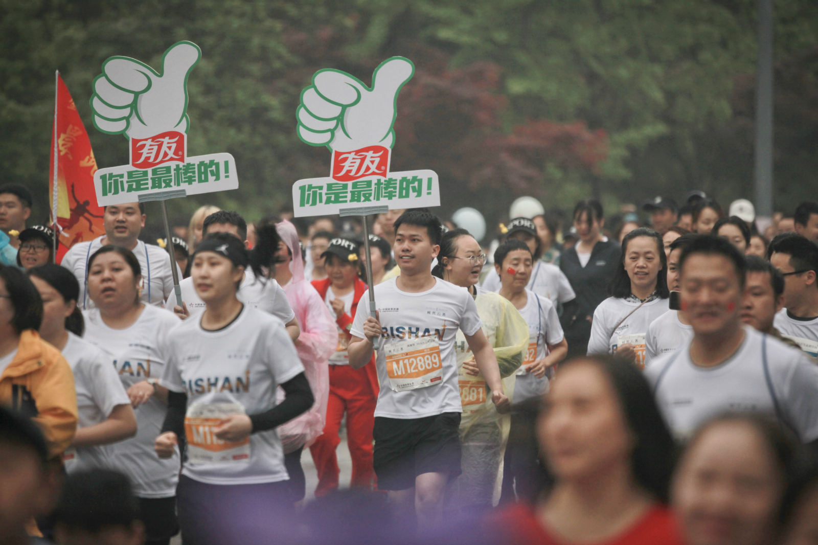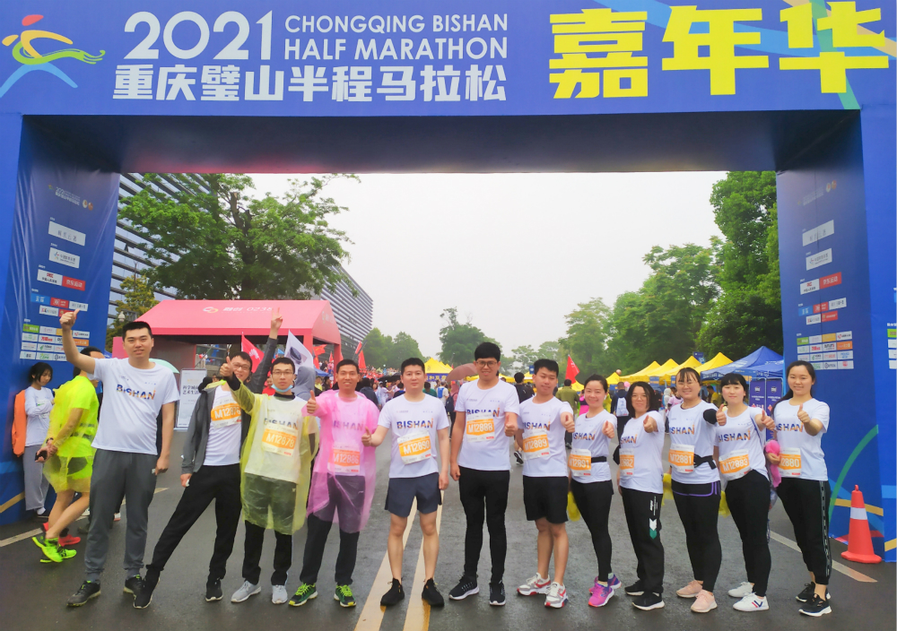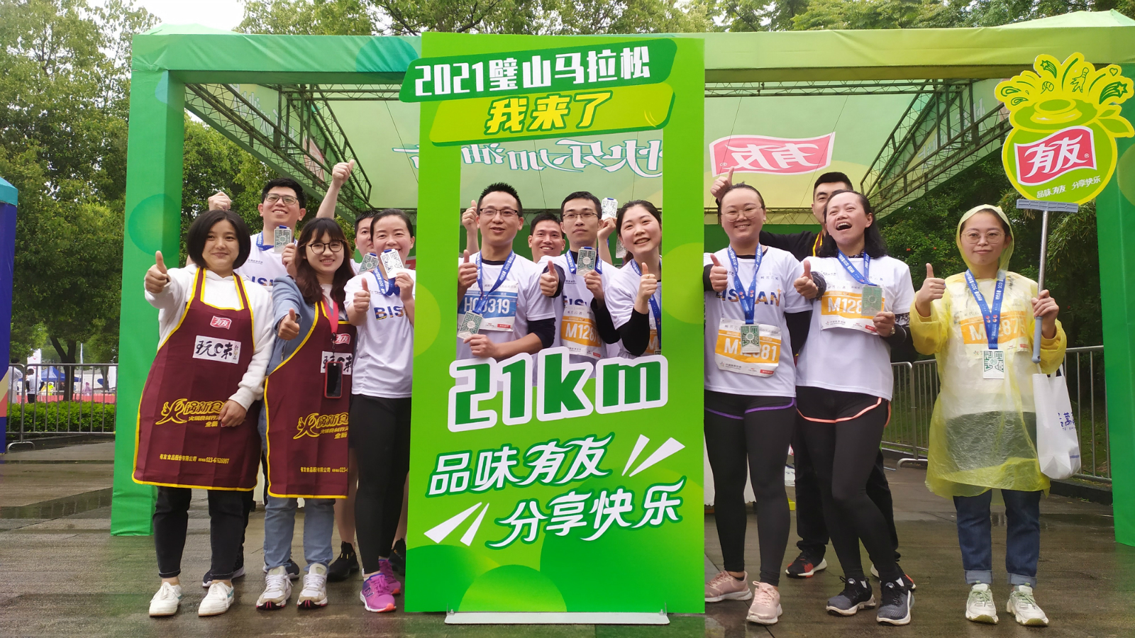 4月11日上午,2021重庆璧山半程马拉松在璧山区人民广场举行,有友食品组织公司员工参加赛事。